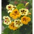 Couleurs variées jaune orangé et crème avec des marques rouge vif au centre. Plante compacte de 20 cm. Idéal pour contenant, panier à suspendre, plate-bande